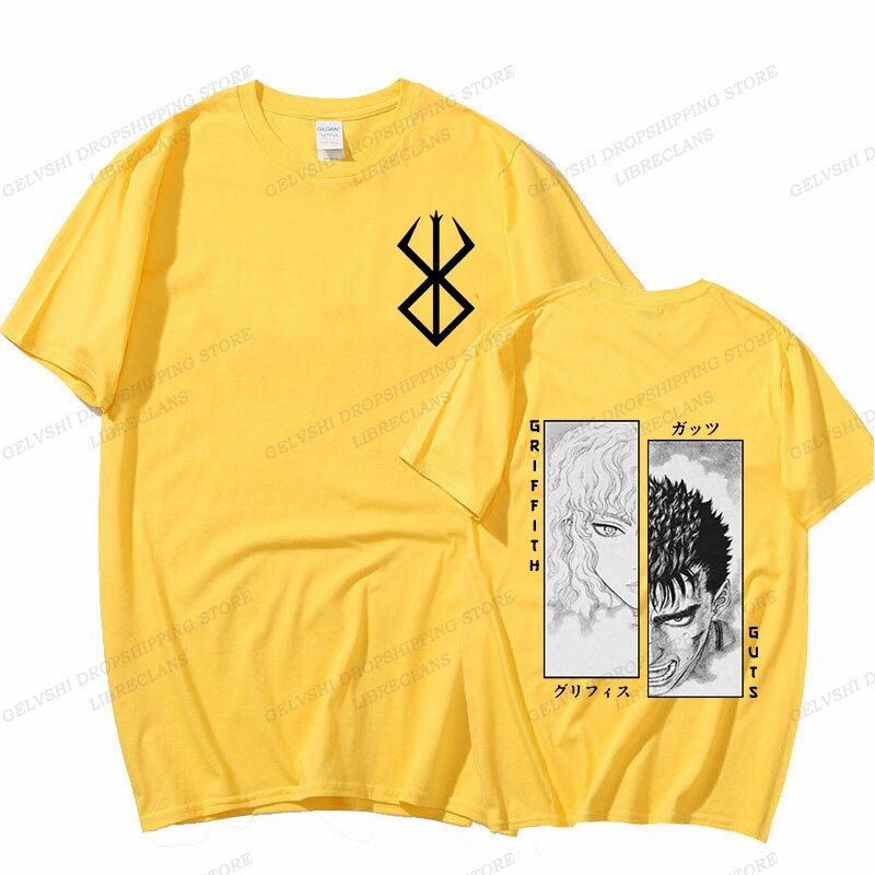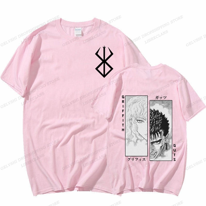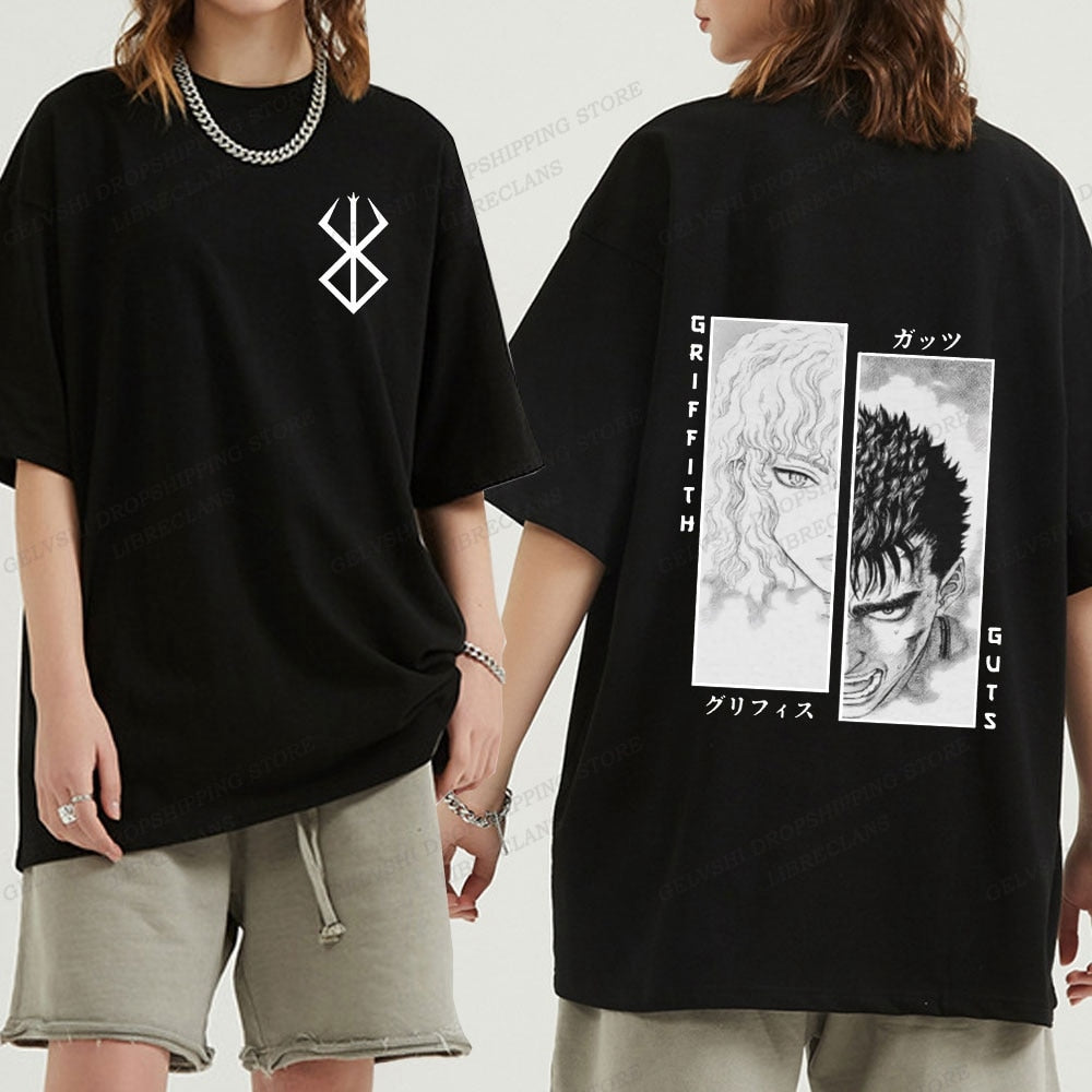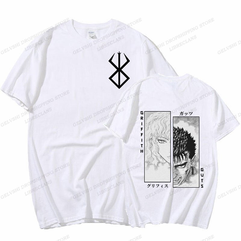 Step into the dark and epic world of Berserk with this stylish tee featuring Griffith and Guts. Designed for true fans of the legendary anime and manga, this shirt captures the intensity of their fateful rivalry, making it a must-have for any collector.