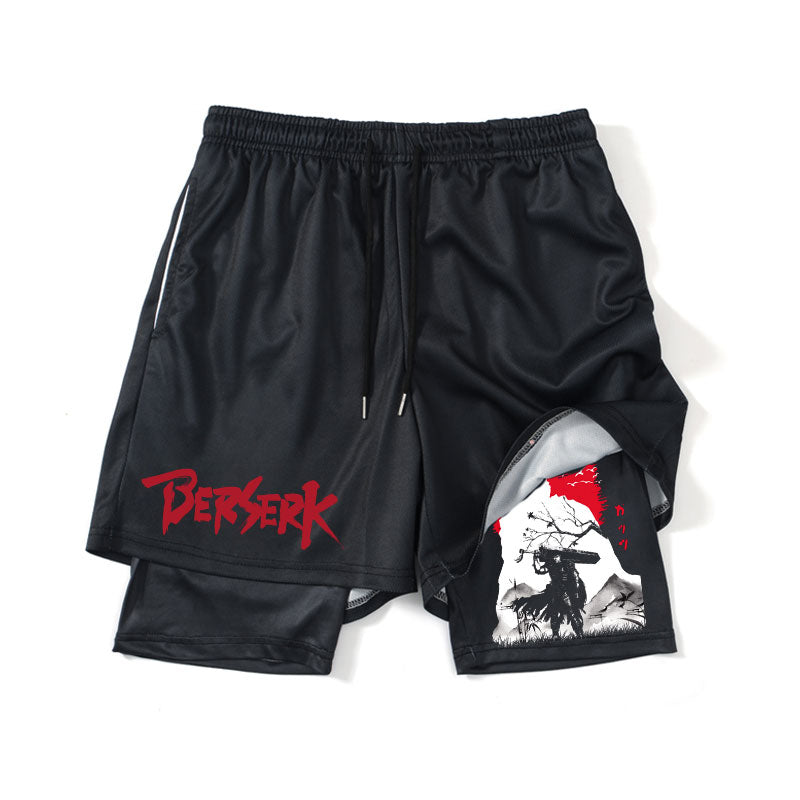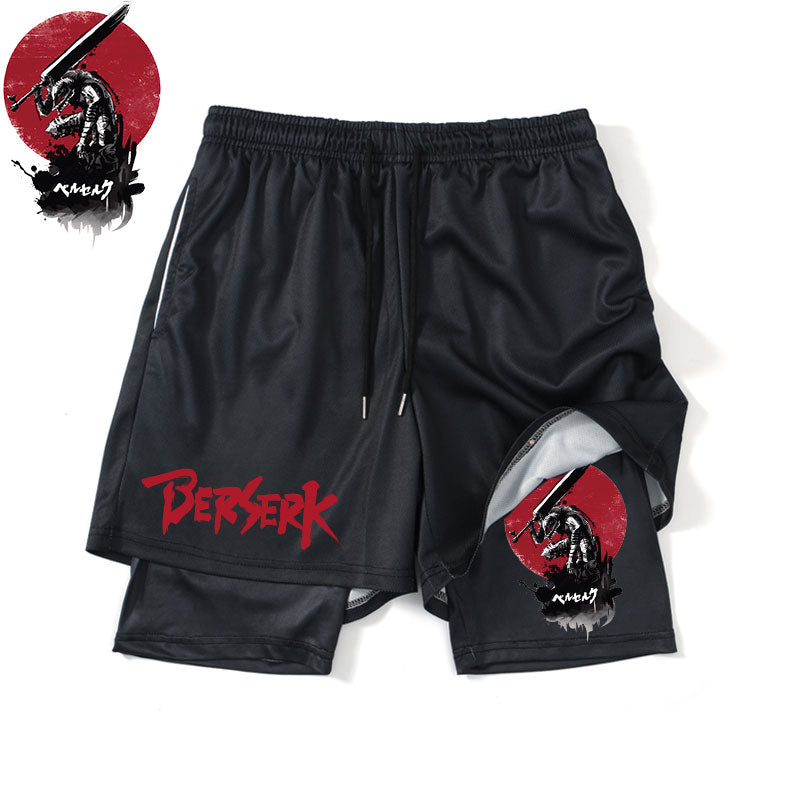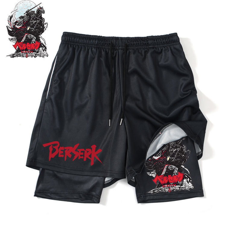 Step into the world of Berserk with these Guts 2-in-1 Shorts, designed for fans who want comfort and bold anime style. With a breathable outer layer and built-in compression shorts, they are perfect for workouts, lounging, or casual wear.