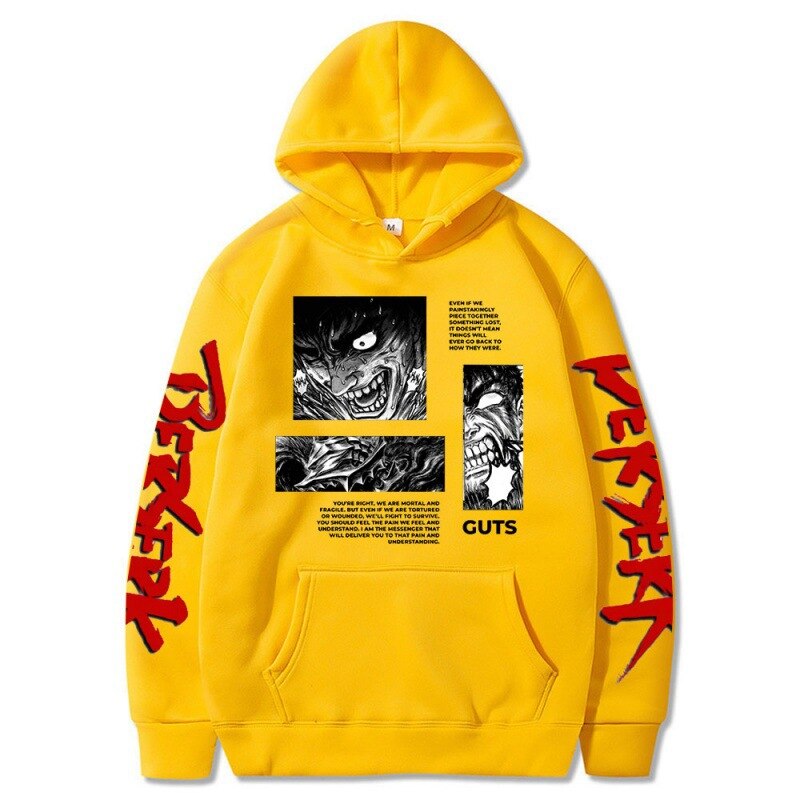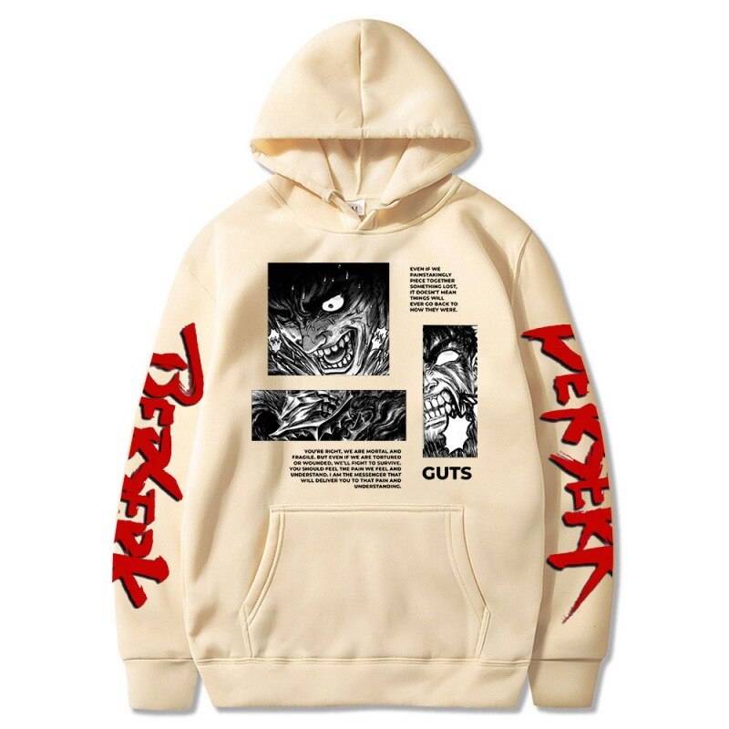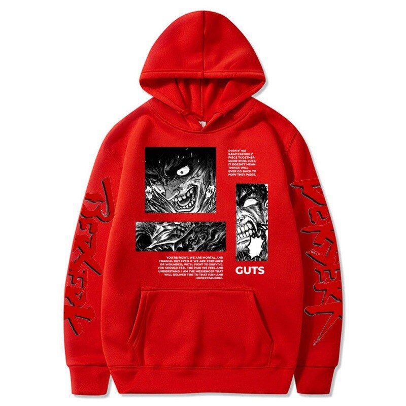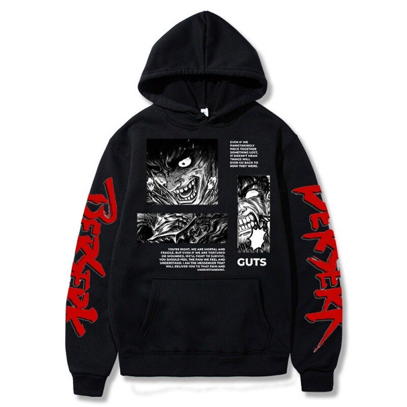 🛡️ Crafted for Quality: Meticulously constructed from premium materials, this hoodie offers not only exceptional comfort but also exceptional durability, ensuring it's your reliable companion for everyday wear. The design faithfully captures Guts, the main protagonist of the series, prominently displayed on the front. It's perfect for cosplay events, anime conventions, or simply as a stylish fashion statement.