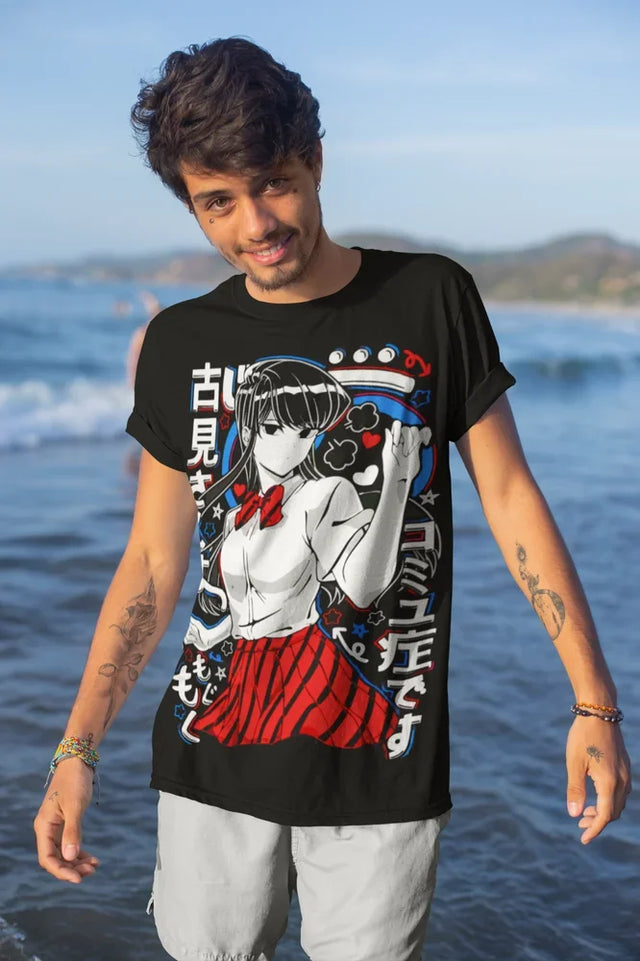 Show your love for Komi San and her journey to overcome communication challenges with this standout Anime T-Shirt, a must-have for every true anime fan.