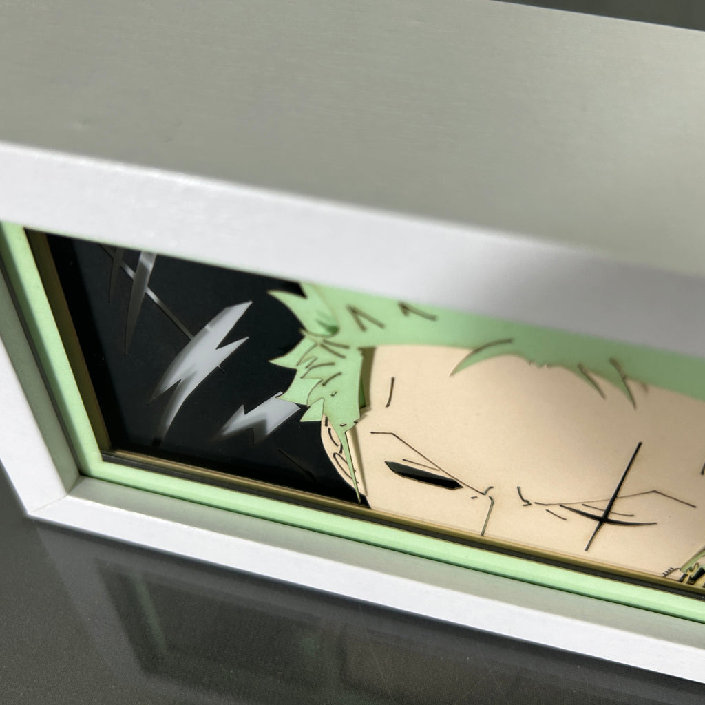 - Iconic Zoro design – Features the legendary swordsman in a striking layered cutout