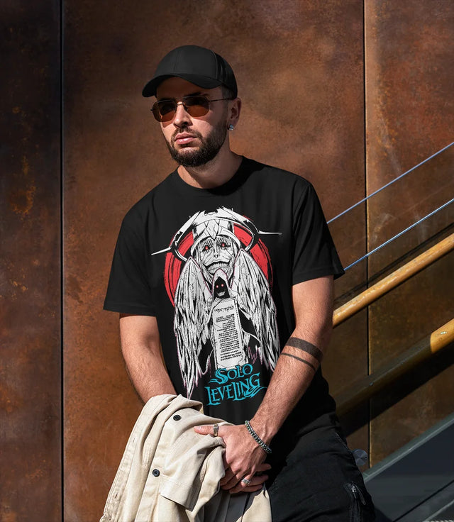 Embrace the dark and powerful vibes of Solo Leveling with this epic Monarch tee. The intricate design captures the essence of one of the most fearsome beings from the series, making it a must-have for fans of intense and action-packed anime. The bold graphics and detailed artwork ensure you stand out, while the comfortable fit keeps you feeling great throughout the day.
