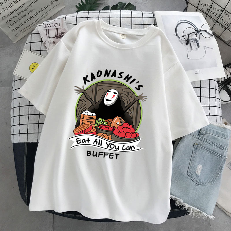 Bring the charm of Studio Ghibli to your wardrobe with this adorable tee! Featuring beloved characters like No Face, Ponyo, and Totoro, this shirt is a must-have for any Miyazaki fan. Whether you're heading out or staying cozy, this tee is perfect for showing off your love for iconic anime films.
