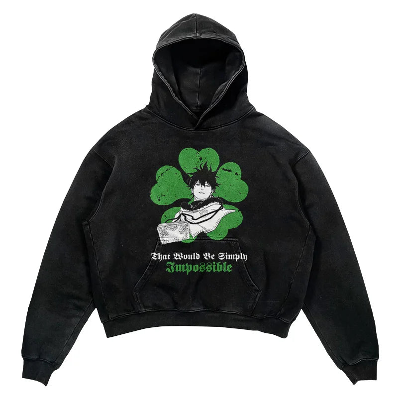 ๐๐"Clover's Call" - Retro Graphic Black Clover Hoodie ๐๐