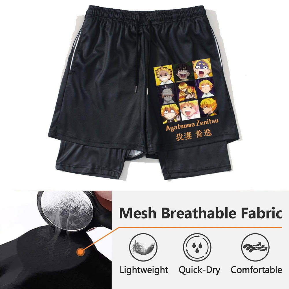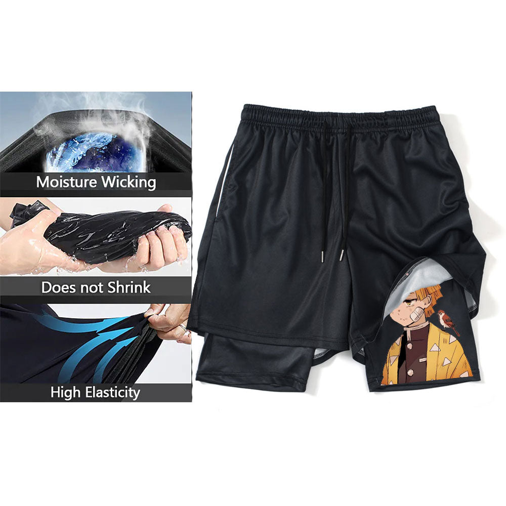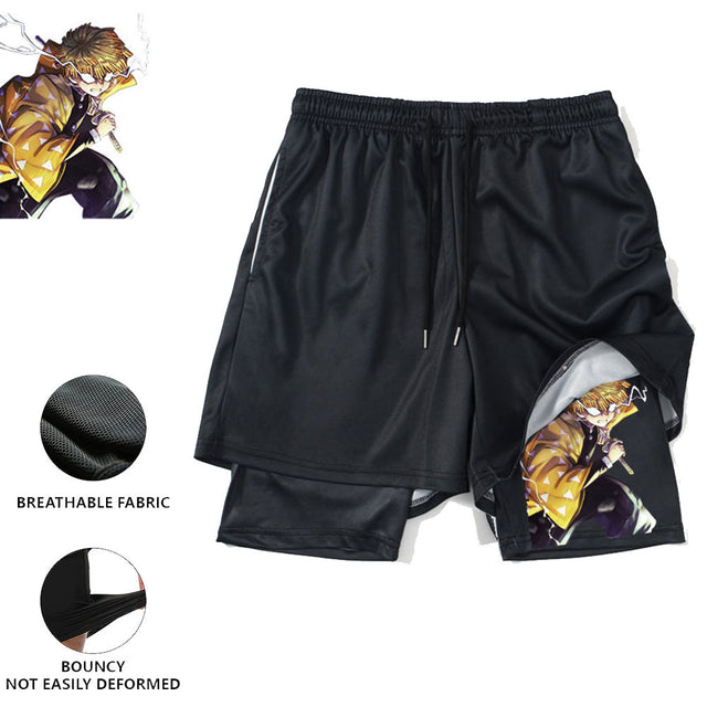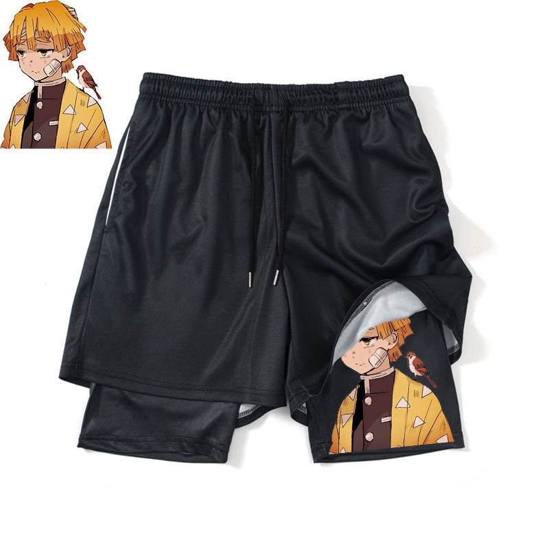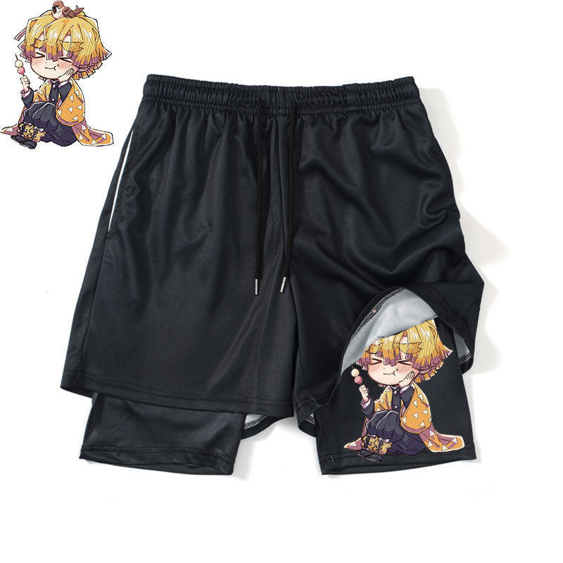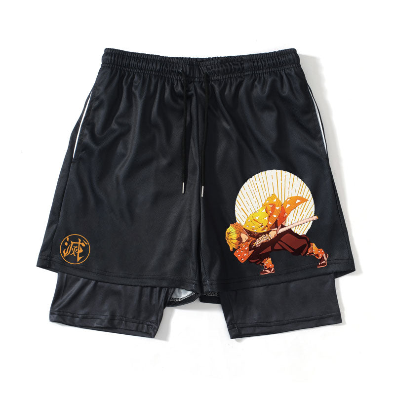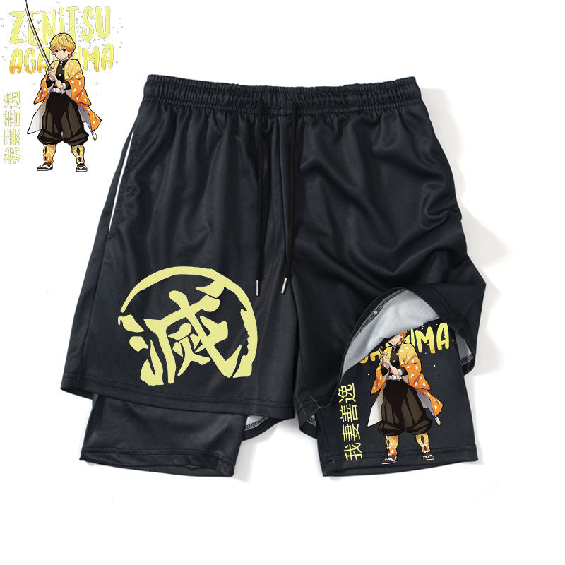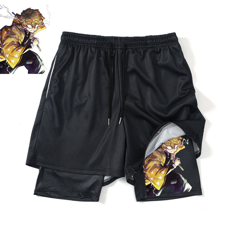 Introducing our Anime Demon Slayer GYM Shorts, designed to take your workout to the next level! Our 2 in 1 shorts are perfect for summer running, jogging and other high-intensity activities. The breathable mesh material ensures maximum comfort and ventilation, while the Zenitsu-inspired design adds a touch of style to your workout wardrobe. These shorts are perfect for male athletes looking for sportswear that is both comfortable and trendy. Don't let uncomfortable workout clothes hold you back, try our Demon Slayer GYM Shorts today and elevate your fitness game!