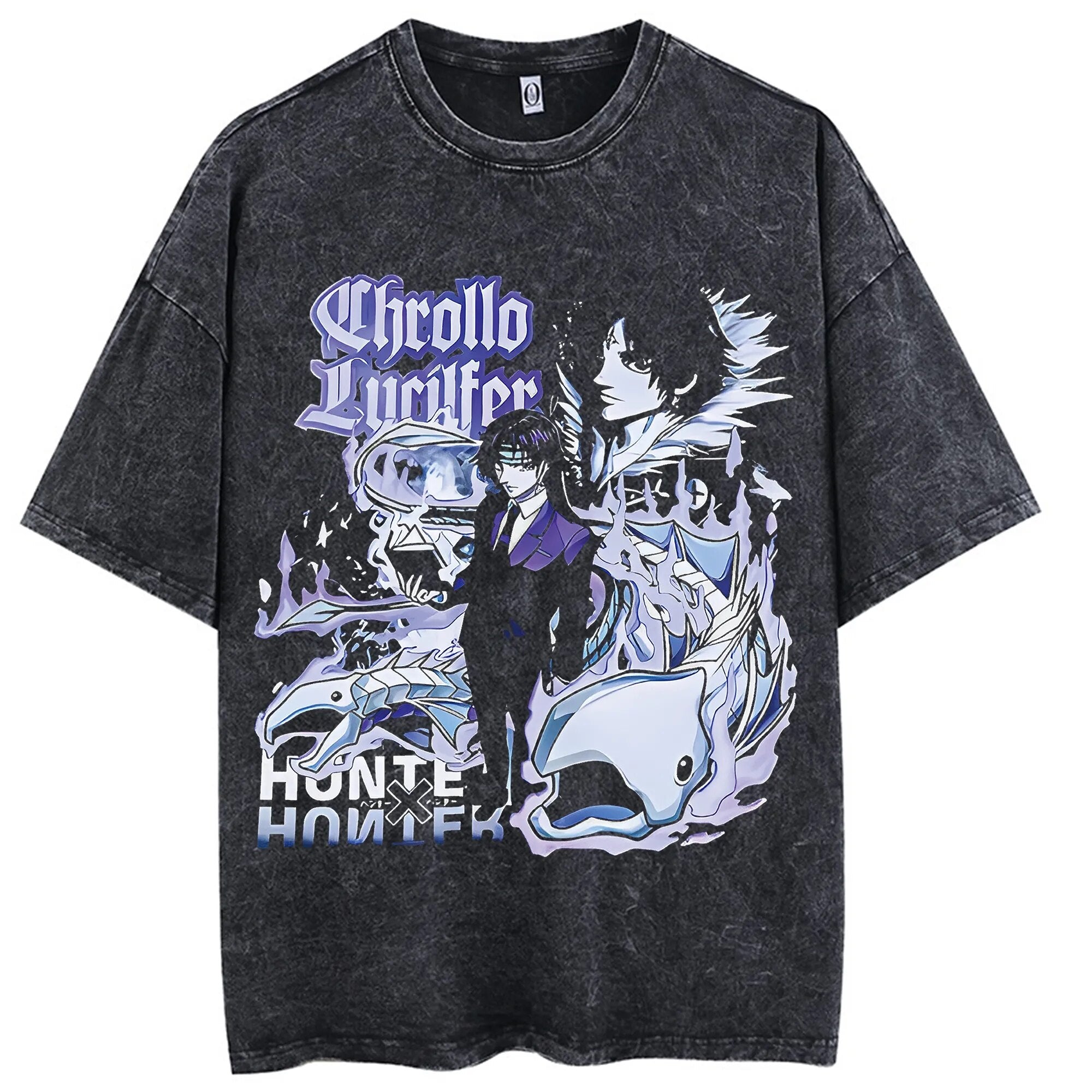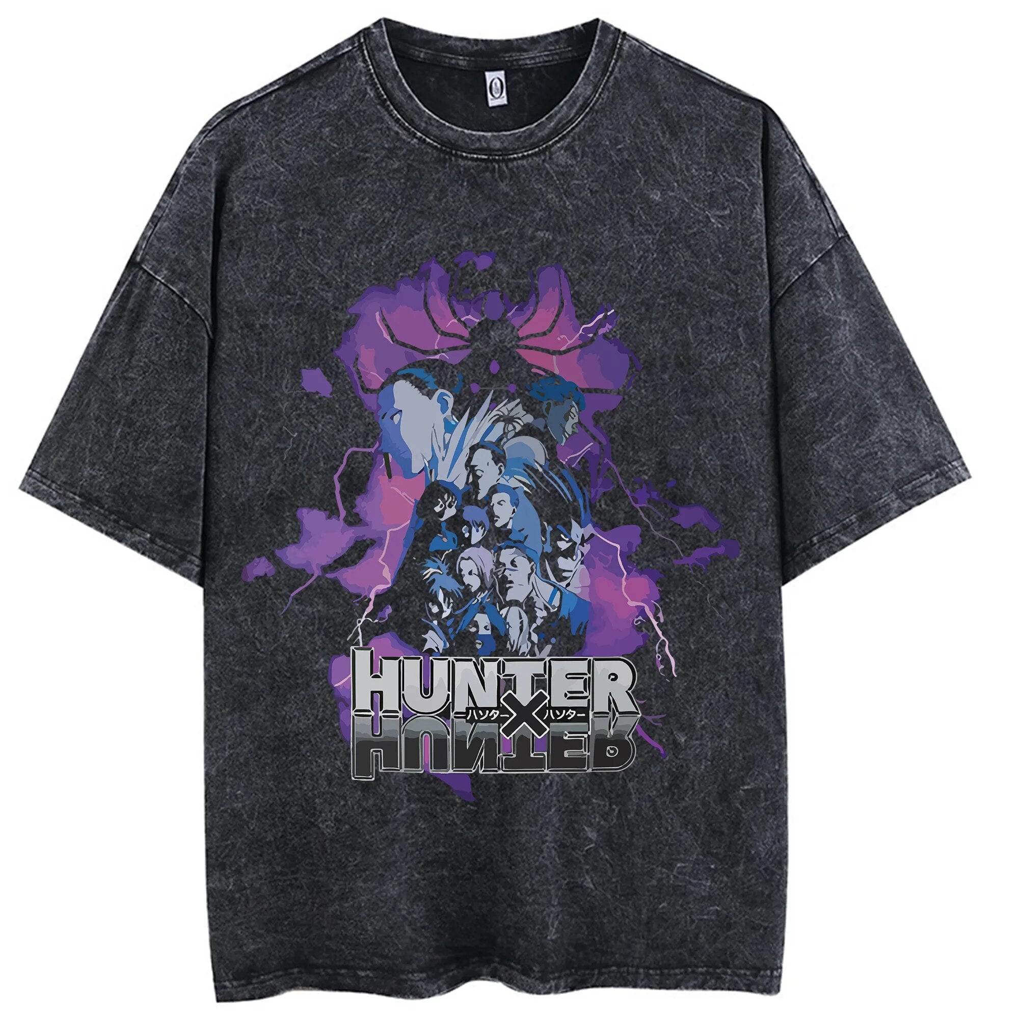 Power up your wardrobe with this Hunter x Hunter Vintage Tee! Featuring bold designs of Gon, Killua, Hisoka, and more, this shirt brings classic anime vibes straight to your fit.