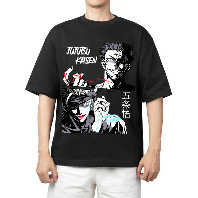 Unleash the energy of Jujutsu Kaisen with the Sakuna & Gojo Tee! Featuring the powerful contrast between two of the series' most iconic characters, this shirt is a must-have for fans who love the intense world of curses and sorcerers.