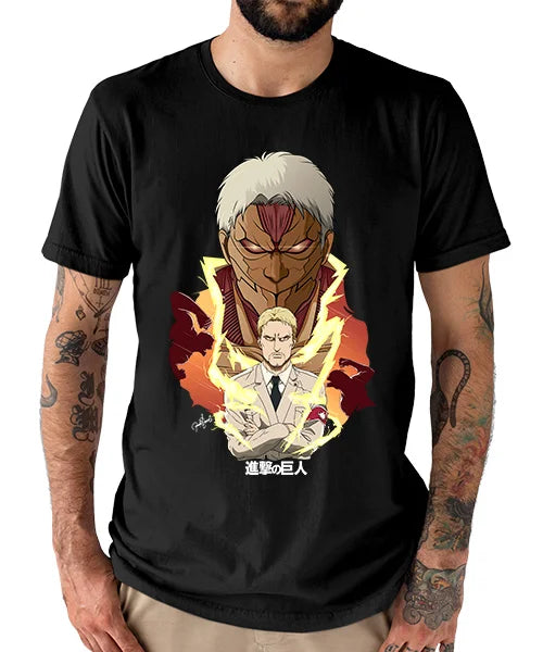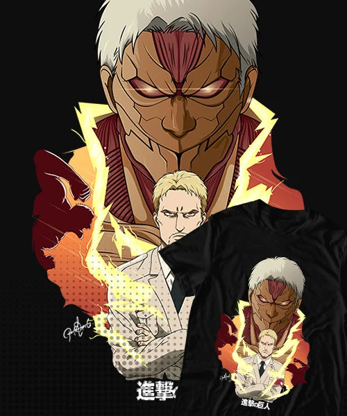 Embrace the power of the Armored Titan with this bold Reiner Braun Tee from Attack on Titan. The striking design features both the human and Titan forms of Reiner, surrounded by vivid lightning effects that symbolize his transformation. The attention to detail perfectly captures the intensity and inner conflict of one of the series' most complex characters. Whether you're defending humanity or just showing off your love for the series, this shirt is a must-have for any Attack on Titan fan.