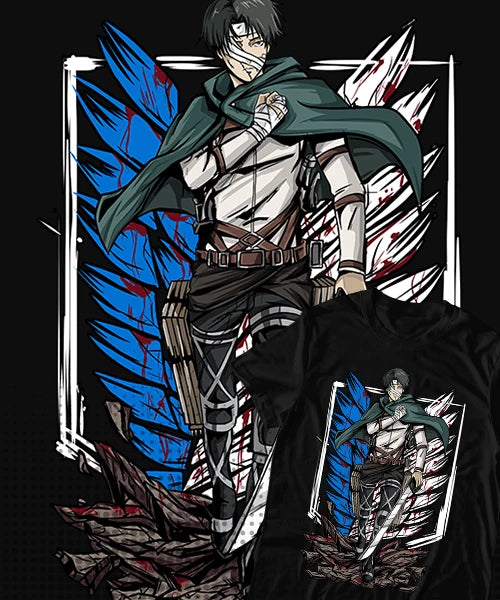 Unleash your inner soldier with this epic Levi Ackerman tee! Featuring the iconic Captain Levi from Attack on Titan, this shirt captures his fearless determination and unwavering resolve in battle. Perfect for fans of the series, this tee is a must-have for showcasing your love for humanity's strongest soldier.