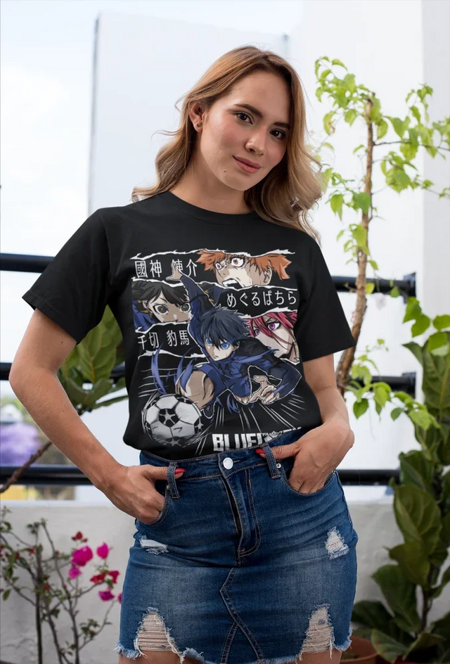 Step up your game with the Bluelock Strikers Tee, featuring the fierce and determined talents of the Bluelock project. This dynamic design showcases Isagi Yoichi, Bachira Meguru, Kunigami Rensuke, and Chigiri Hyoma, each in their intense moments on the field, capturing the thrill and ambition that drive them to become the world's greatest striker. Crafted from premium cotton, this tee combines comfort with eye-catching visuals, making it perfect for fans who are inspired by the relentless pursuit of greatness in Bluelock.