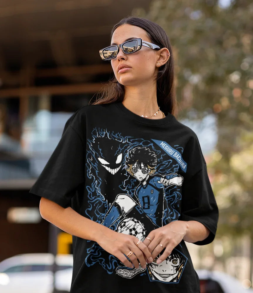 - Dynamic Design: Featuring a detailed and electrifying print of Meguru Bachira in action, surrounded by his iconic blue aura, this tee captures the intense energy of Blue Lock. The bold colors and intricate details make this shirt a standout piece.