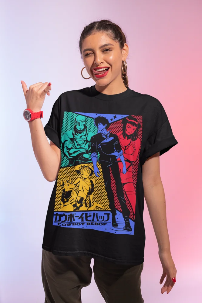 - Classic Anime Design: Features a vibrant print of Spike Spiegel and the crew, celebrating the iconic "Cowboy Bebop" series—a must-have for every fan.