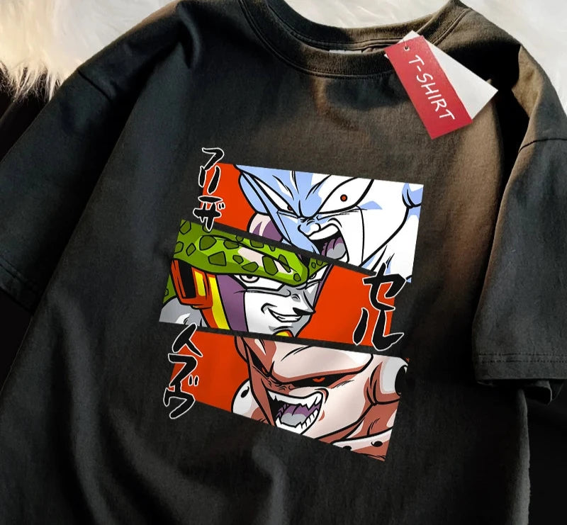 Step into the world of Dragon Ball Z with the Villains Tee, featuring the fearsome trio of iconic antagonists: Frieza, Cell, and Majin Buu. This design captures the intense expressions and power of each villain, bringing their menacing presence to life in vibrant colors. Made from soft, breathable cotton, this tee combines comfort with bold, striking visuals, perfect for any Dragon Ball Z fan who loves the unforgettable villains of the series. Whether for casual wear, anime conventions, or just showing off your love for the classics, this shirt is a must-have for any true DBZ enthusiast.