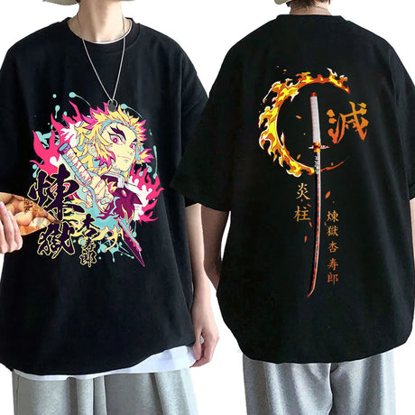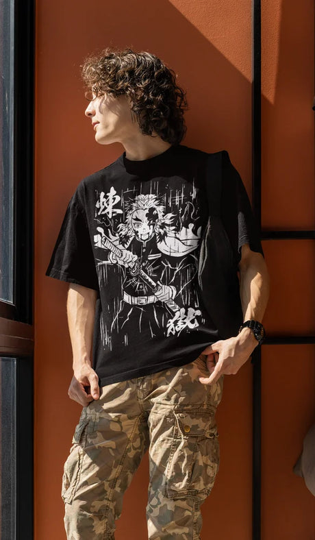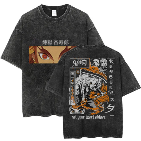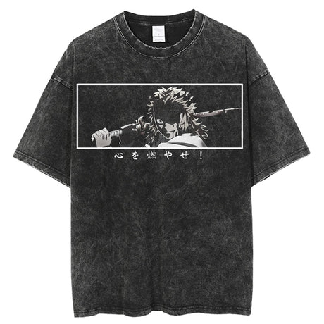 Rengoku Vintage Acid Wash Demon Slayer Tees