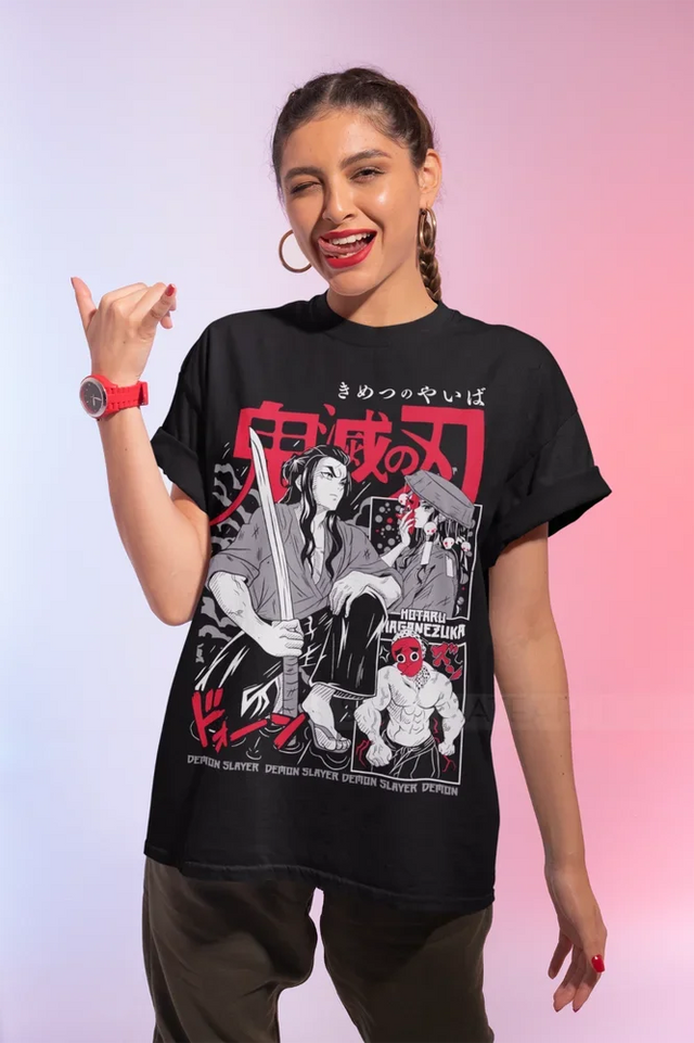 Channel the fierce dedication of Hotaru Haganezuka with this striking Demon Slayer T-Shirt. Featuring the enigmatic swordsmith in a dramatic black and red design, this tee captures the intensity and craftsmanship that defines Haganezuka’s character. The bold graphics highlight his iconic mask and relentless pursuit of perfection, making it an essential piece for any Demon Slayer fan. Made from high-quality fabric, this tee ensures comfort and durability, perfect for both casual wear and as a standout piece in your anime collection.