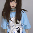 🌌 Azure Dreamscape: Dive into the deep blue of this tee, reminiscent of a night sky touched by the whispers of Kanji mysteries and the soft gaze of a gothic anime girl.