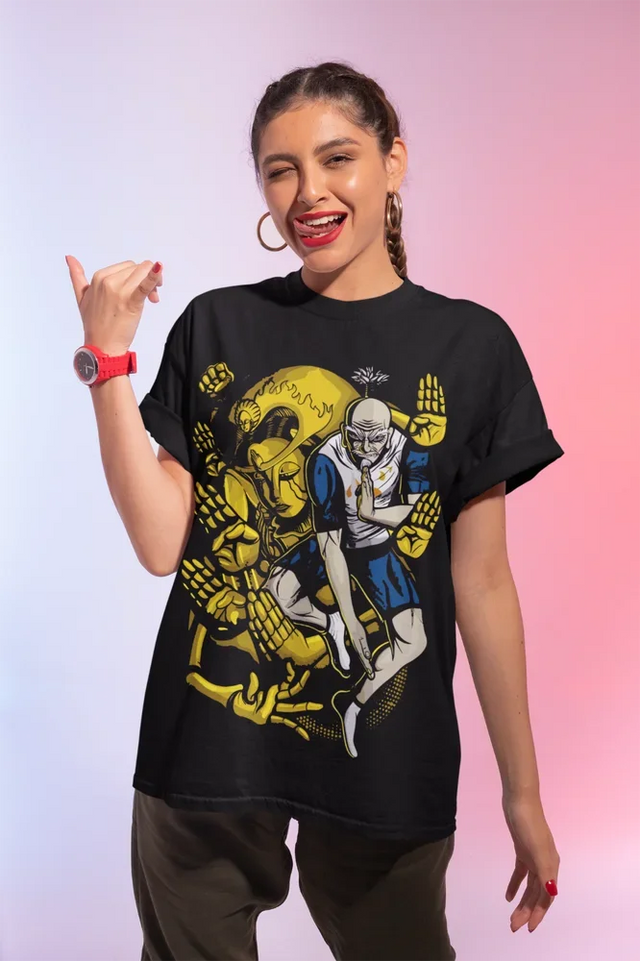 Channel the might of the legendary Isaac Netero with this striking Hunter X Hunter T-Shirt. Featuring the formidable Netero alongside his powerful 100-Type Guanyin Bodhisattva, this tee captures the essence of one of the most iconic moments in the anime. The intense yellow and black color scheme adds depth and drama to the design, making it a must-have for any dedicated Hunter X Hunter fan. Made from ultra-soft, premium fabric, this shirt is as comfortable as it is eye-catching, perfect for showing off your anime love in style.