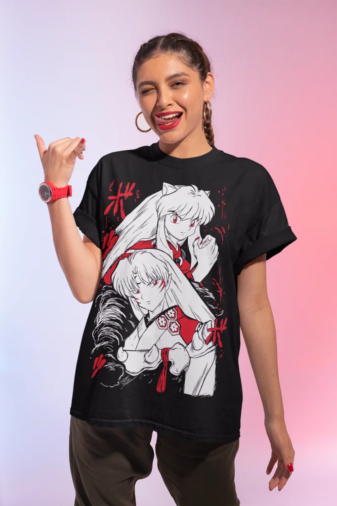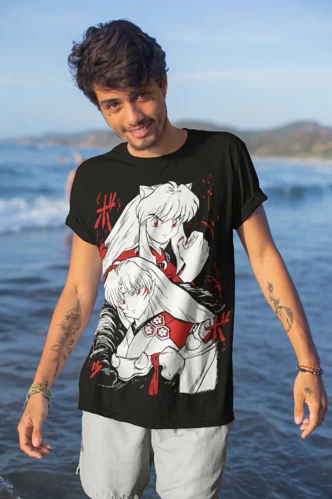 Unleash the power struggle between the iconic half-demon brothers, Sesshomaru and Inuyasha, with this bold and striking tee. Featuring a dynamic design that captures their fierce rivalry and distinct personalities, this shirt brings the world of Inuyasha to life. Perfect for fans who admire the intense bond and battles between these two unforgettable characters.