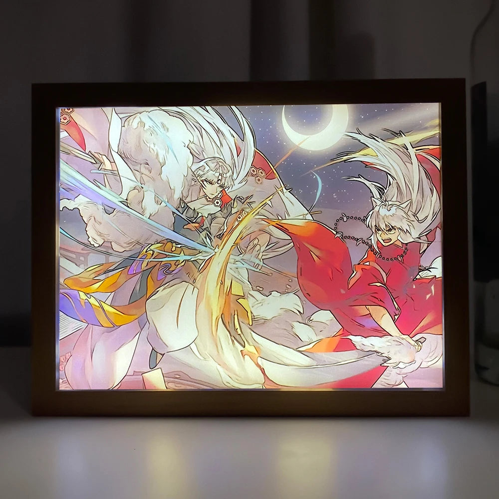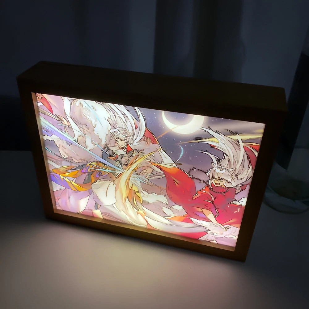 🌟"Inuyasha Sesshomaru & Rin Illuminated LED Art Box - Enchanting Night Light"🌟
