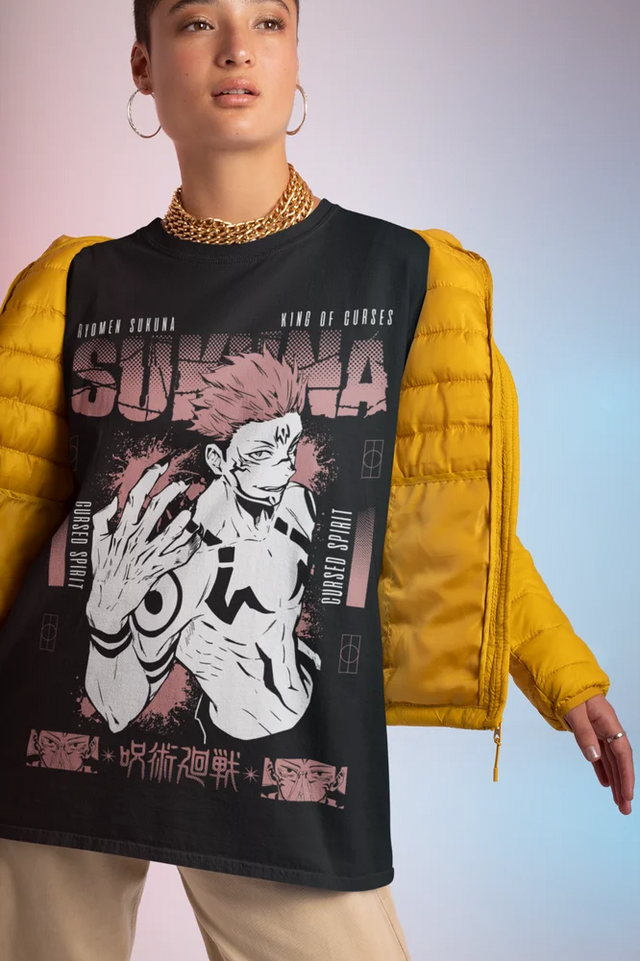 Channel the raw, cursed energy of Ryomen Sukuna from Jujutsu Kaisen with this powerful tee that brings the King of Curses to life. Featuring a bold design of Sukuna in his iconic form, this shirt is crafted for both comfort and style, making it the perfect addition to any anime fan’s wardrobe. With intricate details that pay homage to Sukuna's legendary curse marks and fierce expression, this tee embodies the essence of dark power while offering a unique fashion statement. Elevate your collection with this striking piece inspired by one of Jujutsu Kaisen’s most formidable characters.