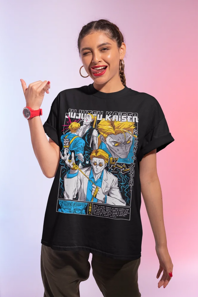 Celebrate the precision and power of Kento Nanami with this stunning Jujutsu Kaisen shirt. The design captures Nanami’s signature look, exuding calm, control, and deadly skill. With a vivid and intricate portrayal of the character, this tee will have you embracing the spirit of one of the most beloved sorcerers. Whether you're a dedicated Jujutsu Kaisen fan or just love detailed anime apparel, this Nanami shirt will make a strong statement.