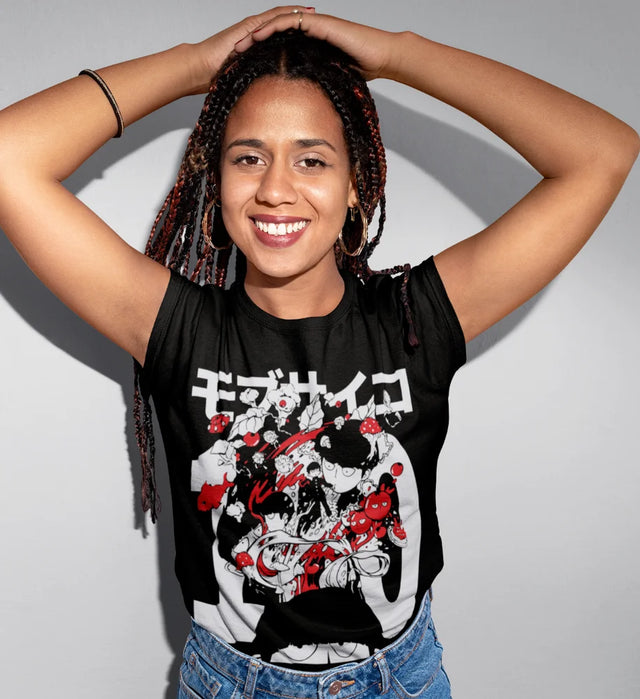 Dive into the world of Mob Psycho 100 with this explosive design that captures the energy and essence of the series. The vibrant red and black color scheme highlights the chaos and excitement surrounding Mob and his psychic powers. This tee is not just for fans of the anime, but for anyone who loves bold and eye-catching fashion. The lightweight, soft fabric ensures comfort, while the detailed design makes this a standout piece in any wardrobe. Whether you're a fan of the supernatural or just looking to express your unique style, this shirt has you covered.