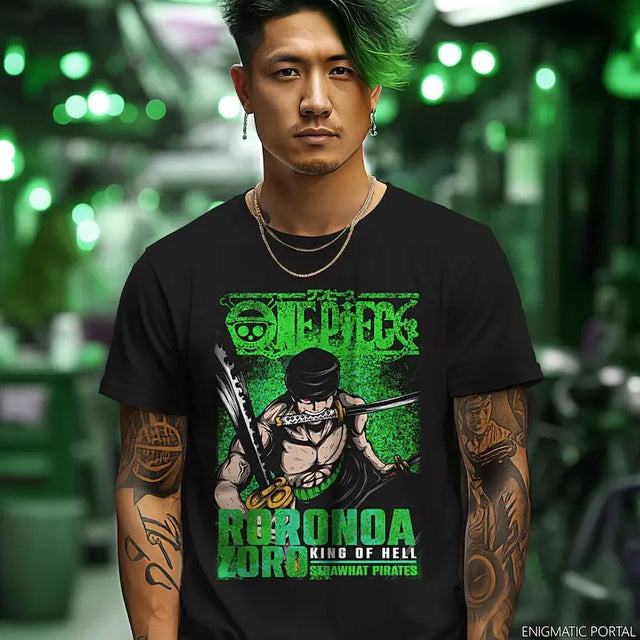 Embrace the power of the legendary swordsman with the Zoro King of Hell Tee, featuring the fierce and iconic Roronoa Zoro from One Piece. This striking shirt captures Zoro’s unyielding spirit and relentless strength, showcasing his intense pose with his iconic swords ready for battle. The bold design, highlighted by vibrant greens and dynamic artwork, reflects Zoro’s unwavering determination as he fights alongside the Straw Hat Pirates. Made from soft, durable cotton, this tee is designed for comfort and style, perfect for any One Piece fan who wants to embody the fearless King of Hell.