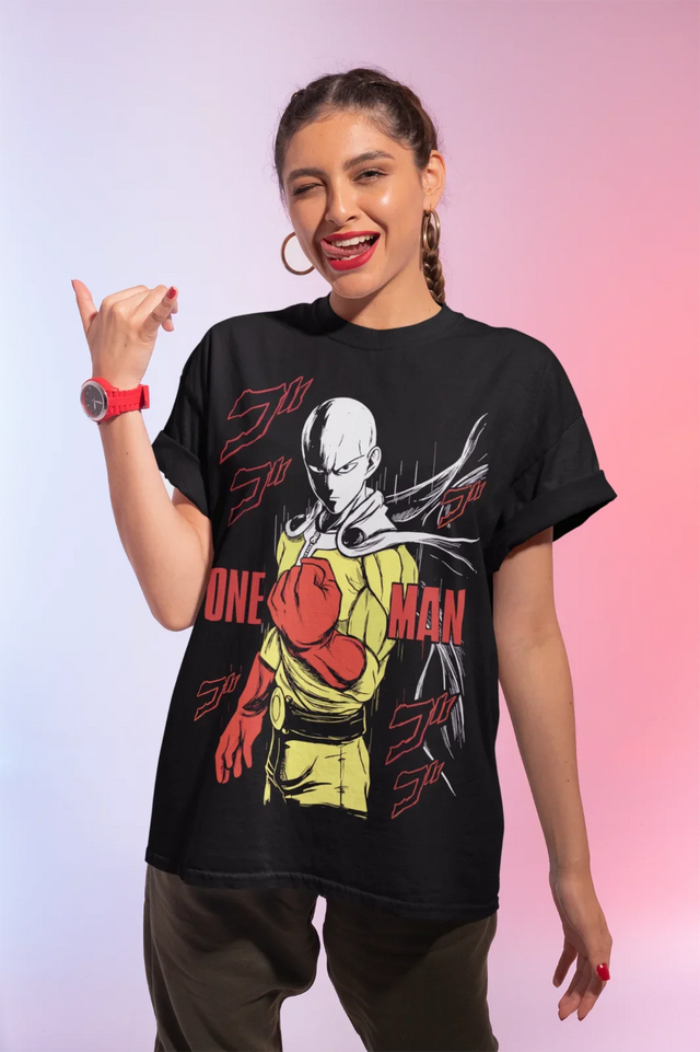 Show your love for One Punch Man and the unbeatable Saitama with this powerful t-shirt. Order yours today and add some punch to your wardrobe!
