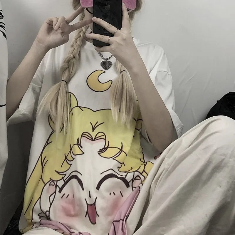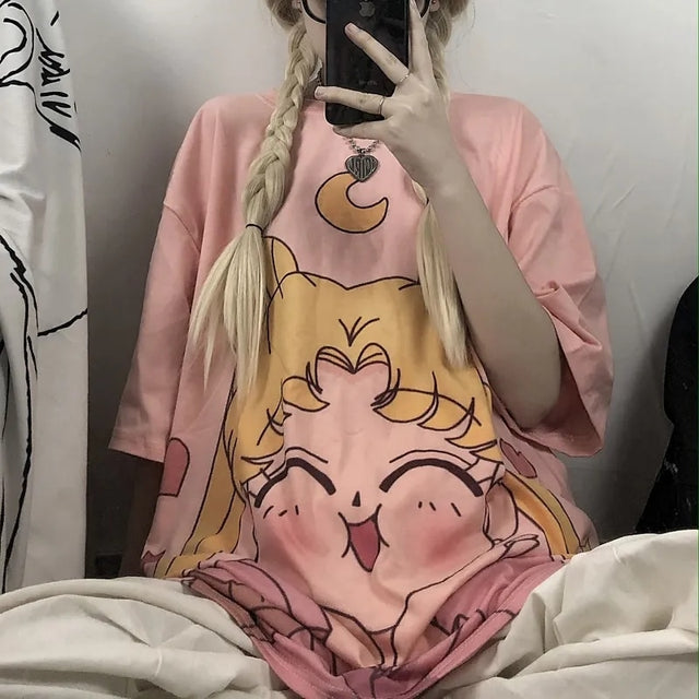 Embrace the magic of Sailor Moon with this stylish oversized tee! Featuring an elegant celestial design, this shirt blends comfort and nostalgia, making it perfect for any Sailor Moon fan.