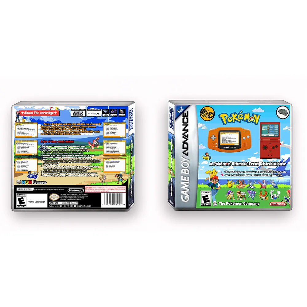 Relive the rarest moments in Pokémon history with the Pokémon GBA Event Cartridge! Packed with legendary distributions from the iconic 10th Anniversary "Journey Across America" event, this collector's item is perfect for any true Pokémon trainer.