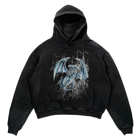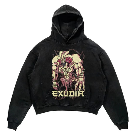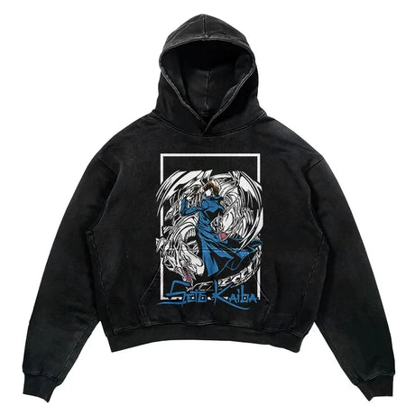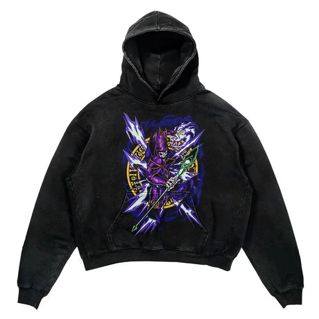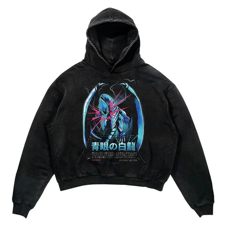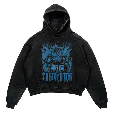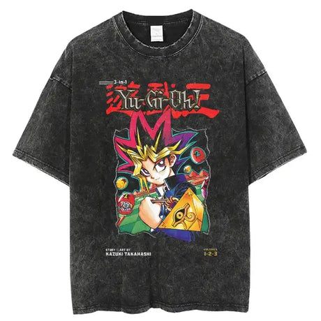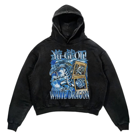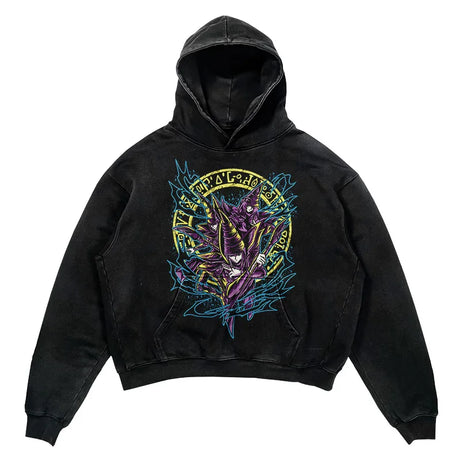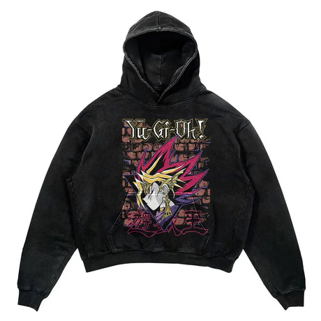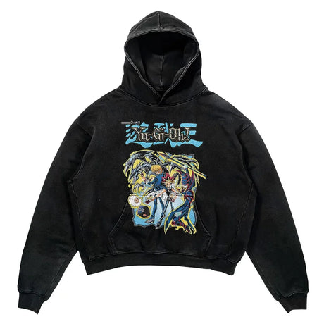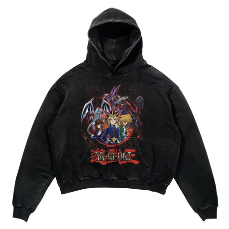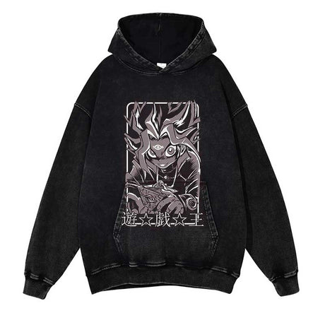 YU-GI-OH! Washed Black Streetwear Cotton Vintage Hoodie