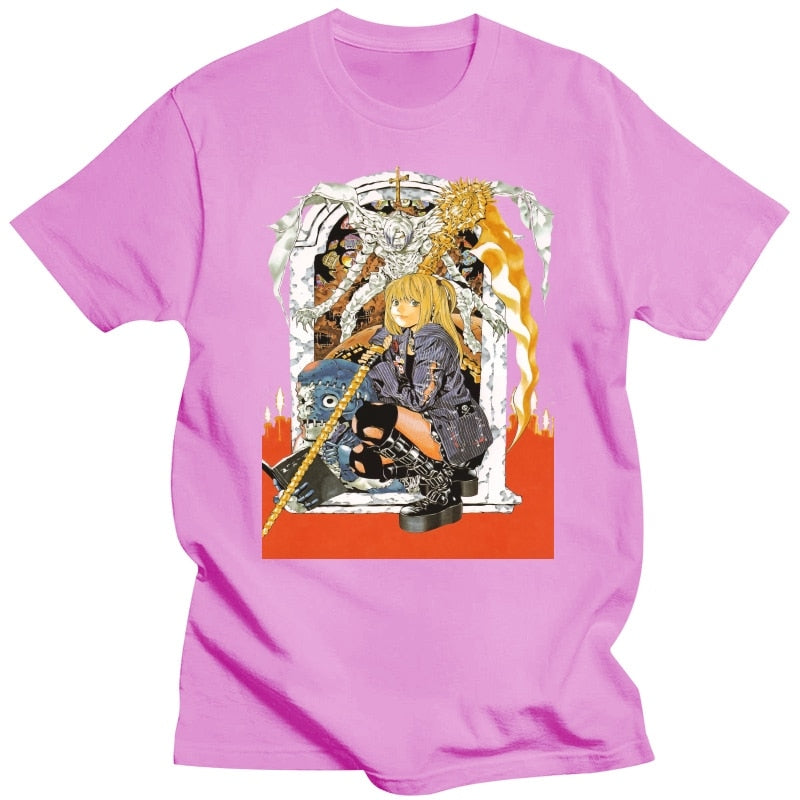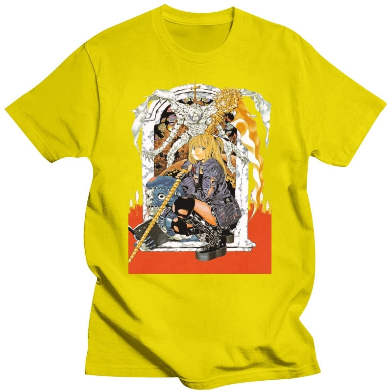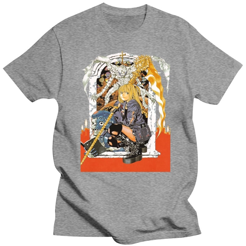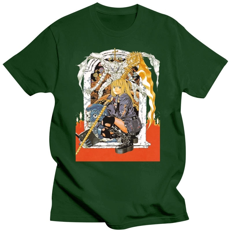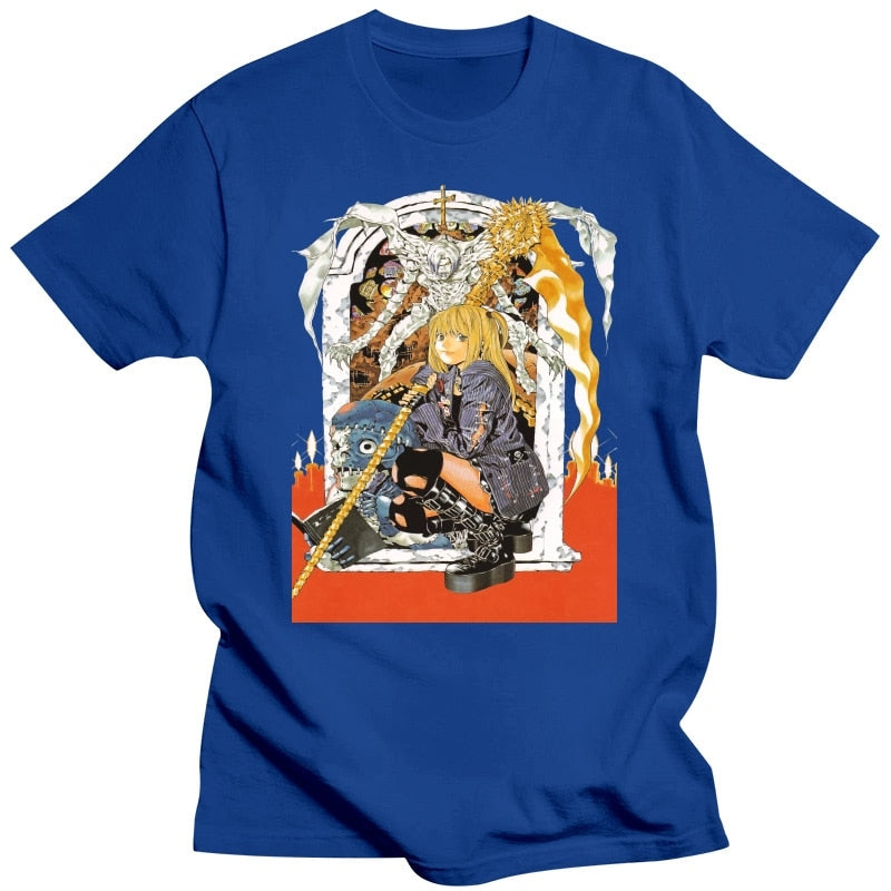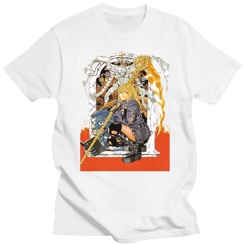 🖼️ Unique Graphic: The eye-catching print featuring Misa Amane, Ryuk, and Light Yagami sets this t-shirt apart. It's not just a piece of clothing; it's a work of art that pays homage to the horror, anime, and graphic tee genres.