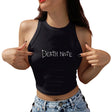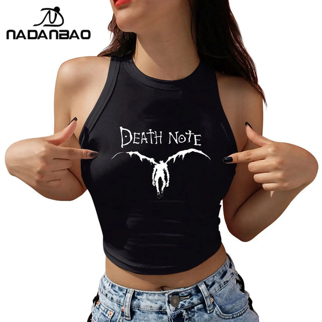 Embrace the dark and mysterious world of Death Note with these sleek crop tops featuring Ryuk’s eerie presence. Perfect for anime fans who love minimalist yet bold designs, this top is a must-have for anyone drawn to the supernatural side of anime.
