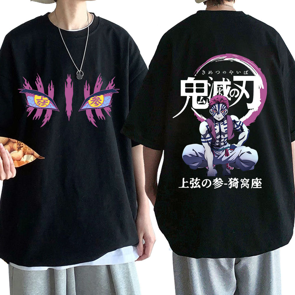 Delve deep into the thrilling world of Demon Slayer with the "Akaza's Gaze: Demon Slayer Dual Essence" Shirt, an attire capturing the intensity and allure of Akaza's eyes. Let the haunting beauty of the Upper Three Moon grace your presence! 🌙🔪