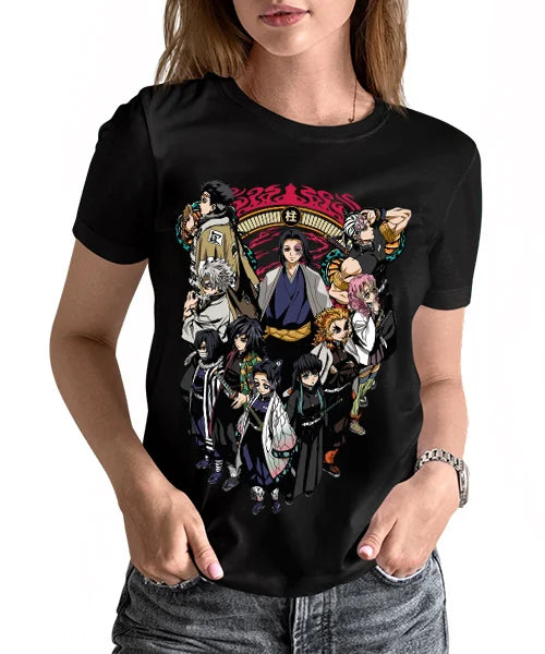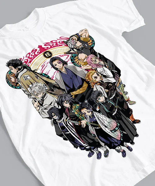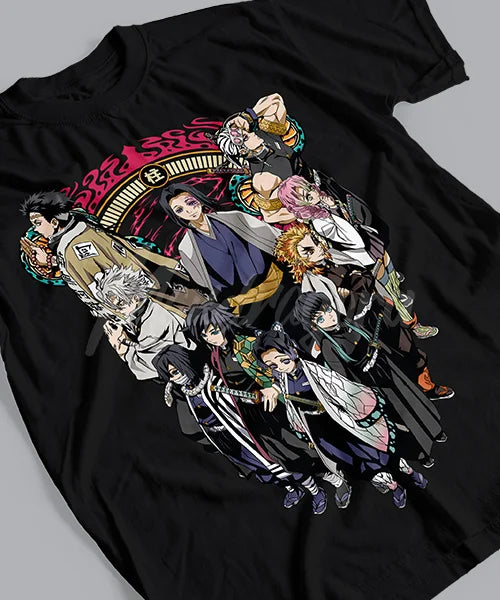 Join the ranks of the Hashira with this incredible Demon Slayer tee. Showcasing the powerful group of Pillars in stunning detail, this shirt is perfect for any fan looking to represent their favorite warriors in style. A must-have for those who love the thrilling battles and epic characters of Demon Slayer.