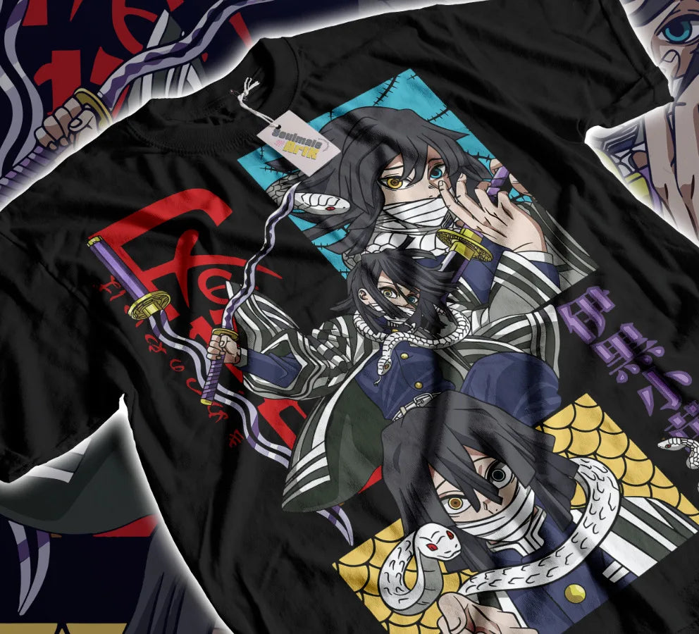 - Obanai Iguro-Inspired Design: Show your dedication to Demon Slayer with this striking tee featuring the enigmatic Serpent Hashira, Obanai Iguro.