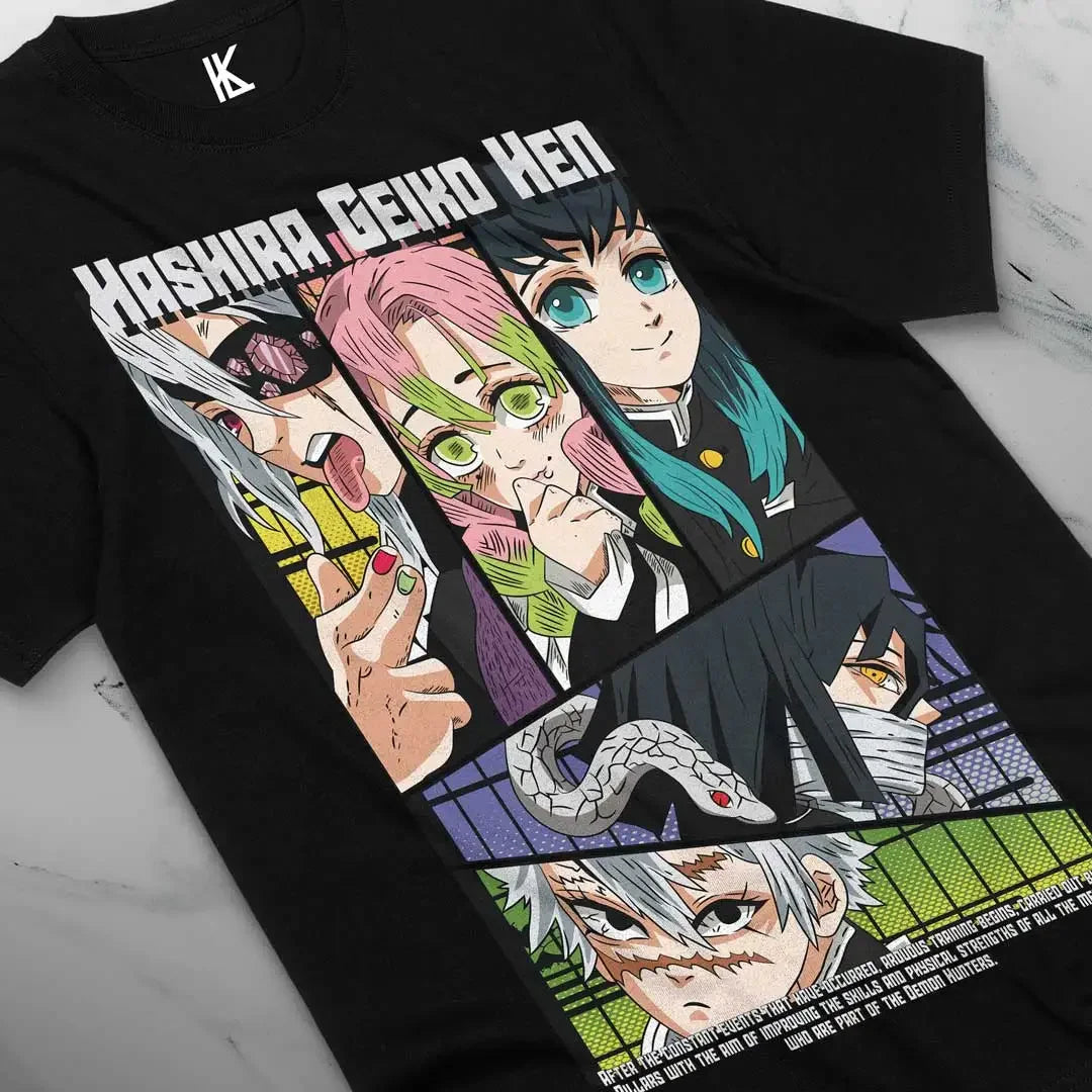 Celebrate the might of the Hashira with this epic Demon Slayer tee. Featuring a collage of the formidable Hashira warriors, this shirt captures the personalities and fierce determination of the demon-hunting elite. A must-have for fans who admire the strength and style of the Demon Slayer universe.