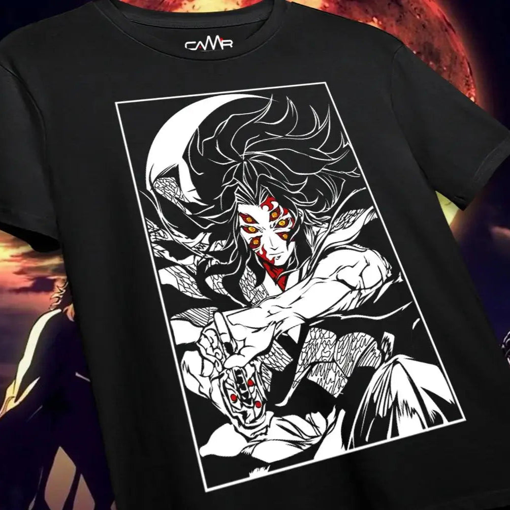 Embrace the dark elegance of the Upper Moon One with the Kokushibo DS Tee. This striking design showcases the fearsome Kokushibo in intricate detail, capturing his eerie aura and formidable presence. Perfect for Demon Slayer fans who admire the artistry and complexity of this iconic character.