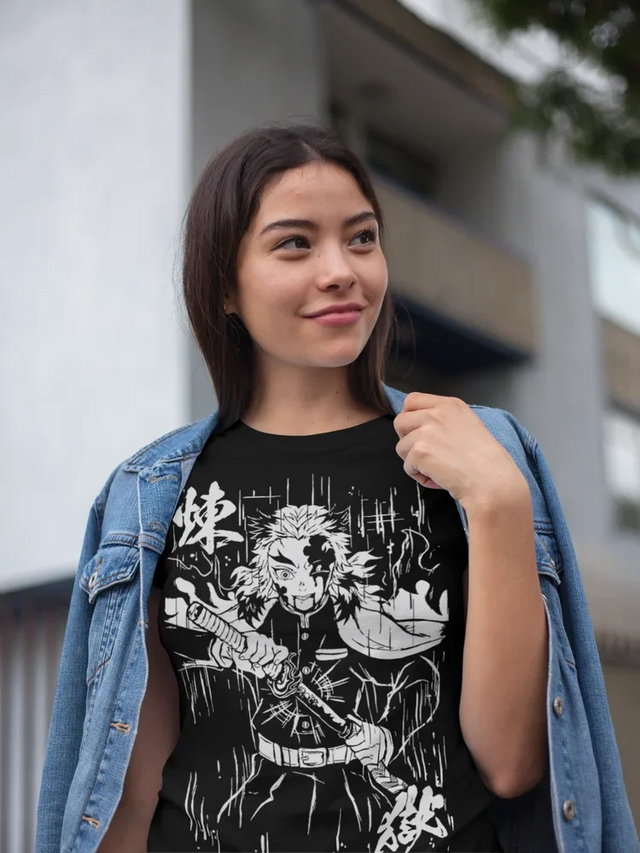 Crafted from premium soft cotton, this shirt ensures all-day comfort while you pay tribute to one of Demon Slayer’s most beloved characters. The high-quality print stands out against the dark fabric, creating a bold statement piece that's perfect for conventions, casual outings, or as a unique addition to your anime collection.
