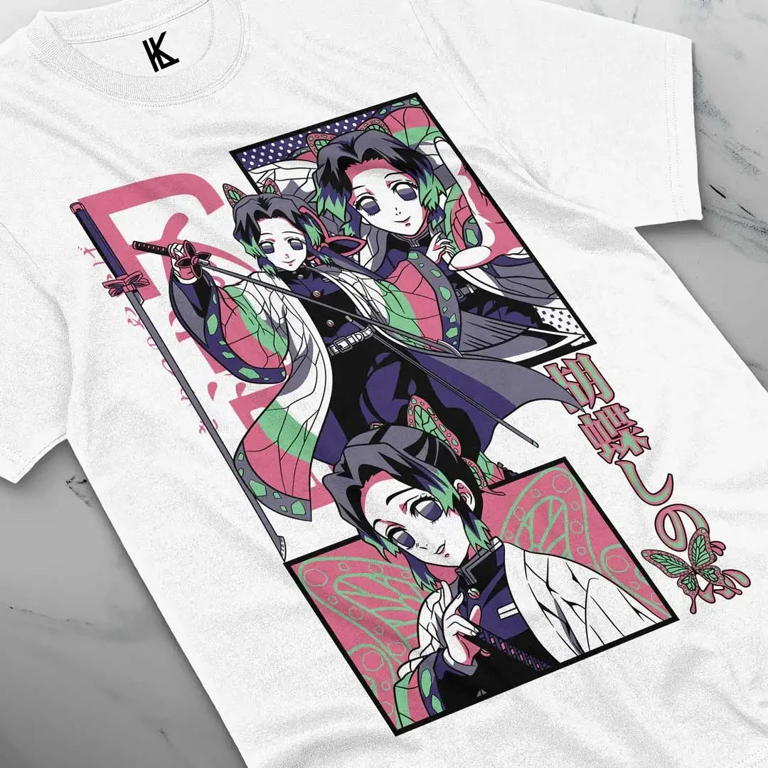 Embrace the elegance and strength of the Butterfly Hashira with this Shinobu Butterfly Tee, featuring the graceful and lethal Shinobu Kocho from Demon Slayer. This vibrant design captures Shinobu’s delicate beauty and fierce spirit, adorned with intricate butterfly motifs that symbolize her unique fighting style. Crafted for comfort and style, this tee is perfect for fans who admire Shinobu’s calm resilience and skill, making it a great addition to any Demon Slayer fan’s collection.