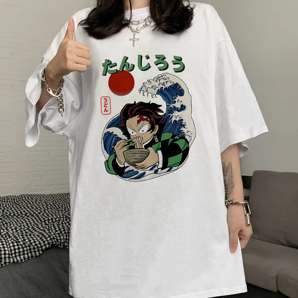 Step into the world of Demon Slayer with our exclusive, oversized tee, capturing Tanjiro's untamed ramen moment. Perfect for those who love their anime as much as a bowl of hot, steamy noodles! 🍜⚔️