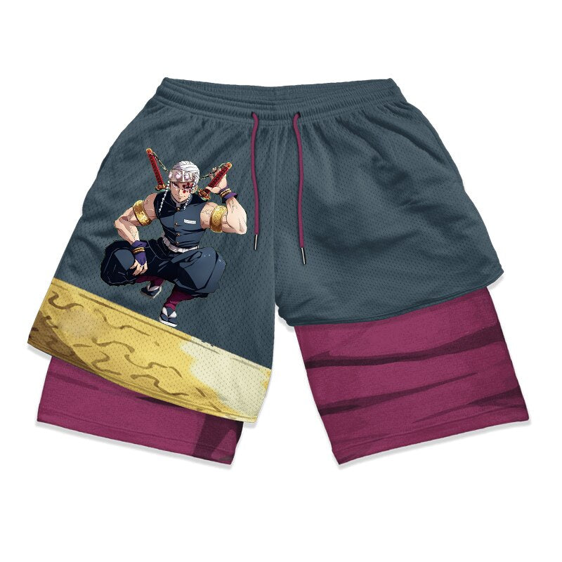 Experience the fusion of style and comfort with our Tengen Uzui Style Demon Slayer Anime Gym Shorts. These versatile 2-in-1 compression shorts with pockets are designed for your active lifestyle, offering a 5-inch quick-dry stretchy fit that's perfect for your fitness workouts.