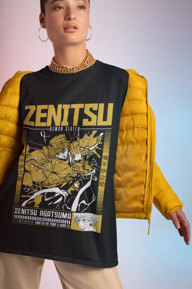 Electrify your wardrobe with the dynamic Zenitsu Thunderstrike Tee, showcasing one of Demon Slayer's most iconic characters, Zenitsu Agatsuma, in the middle of his powerful Thunder Breathing technique. With its bold yellow and black color scheme and stunning design, this tee is a must-have for every Demon Slayer fan. Perfect for both casual wear and anime conventions, it lets you channel Zenitsu’s energy wherever you go.
