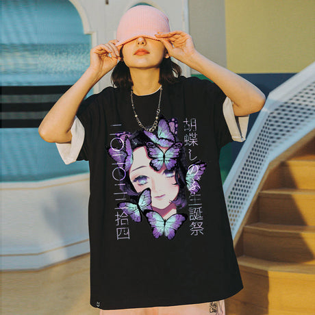 Demon Slayer Kocho Shinobu Print Cotton T-Shirt
