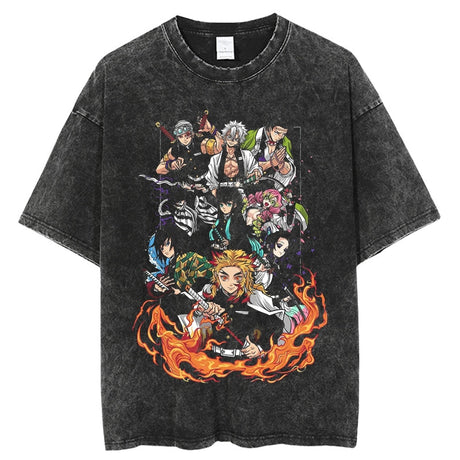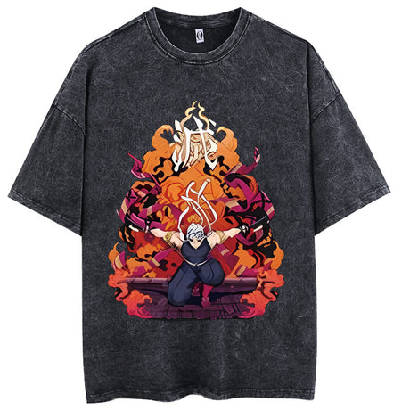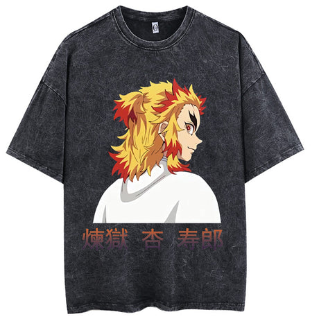 Rengoku Vintage Acid Wash Demon Slayer Tees