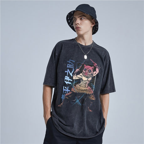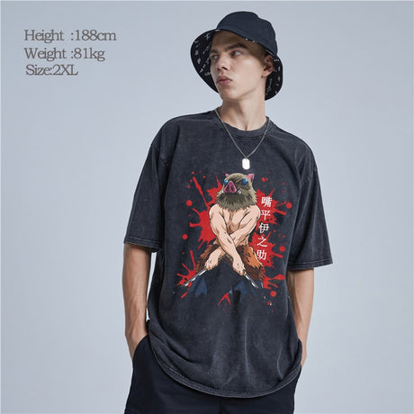 Inosuke Vintage Acid Wash Demon Slayer Tees