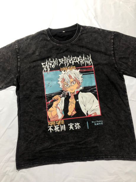 Sanemi Shinazugawa Vintage Acid Wash Demon Slayer Tees