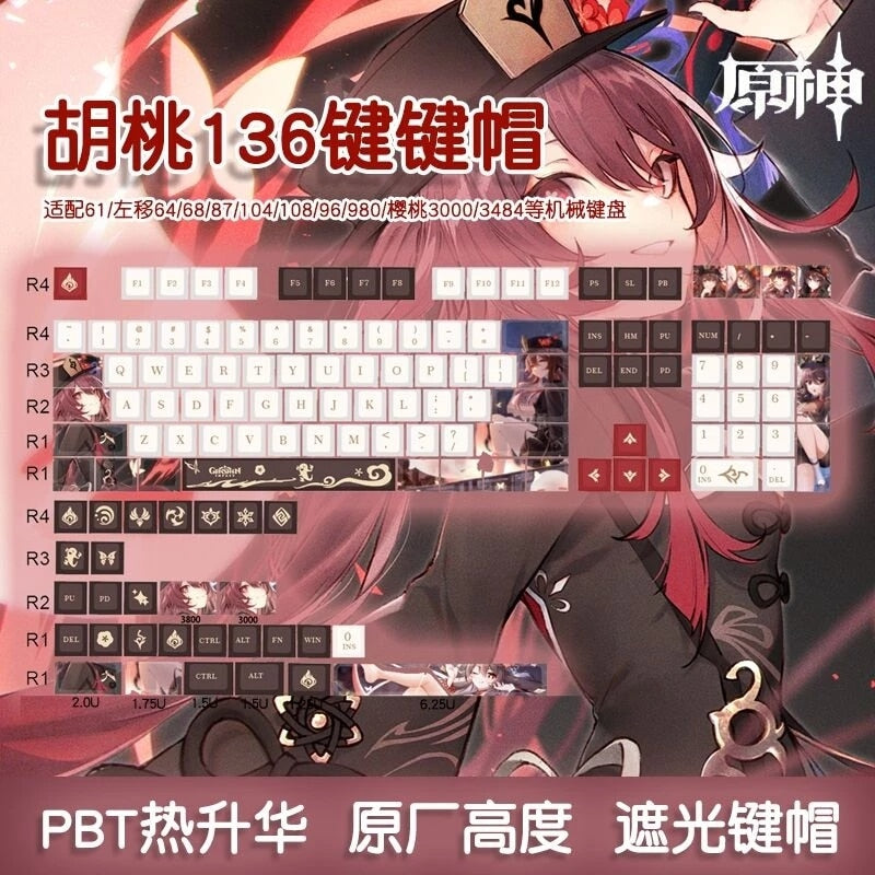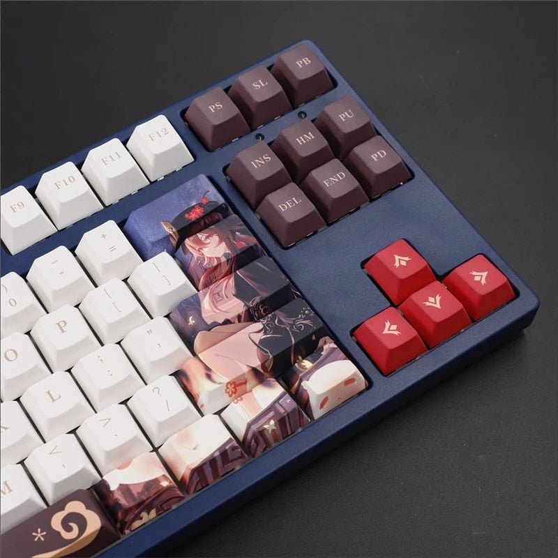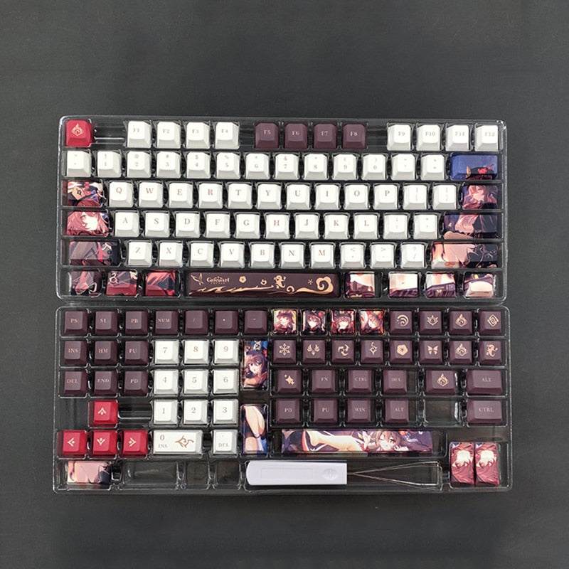 Add some anime-inspired flair to your mechanical keyboard with these stunning Genshin Impact Keycaps! Featuring the beloved character Hutao, these keycaps are made of durable PBT material and come in a set of 136 pieces, allowing you to customize your keyboard to your heart's content. The intricate design is perfect for gamers and anime fans alike, making it a great gift for the otaku in your life. These keycaps are easy to install and are sure to add a unique touch to any keyboard setup. Please note that this is not a full keyboard, but rather a set of keycaps designed for mechanical keyboards. Upgrade your typing experience with these cool and eye-catching keycaps!