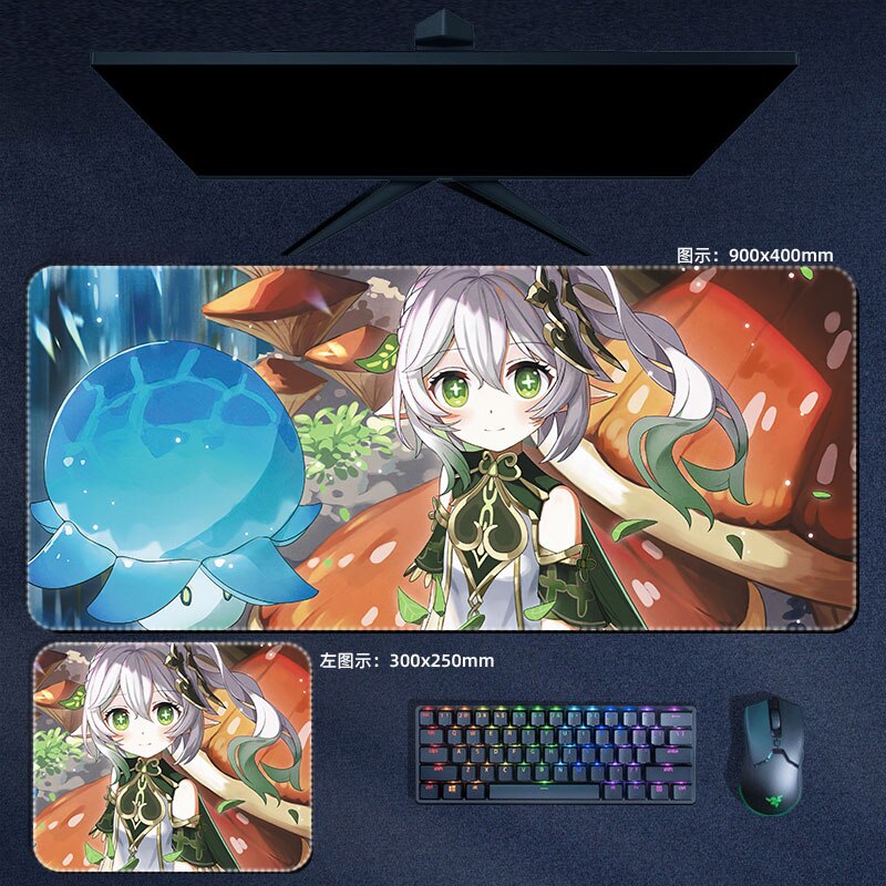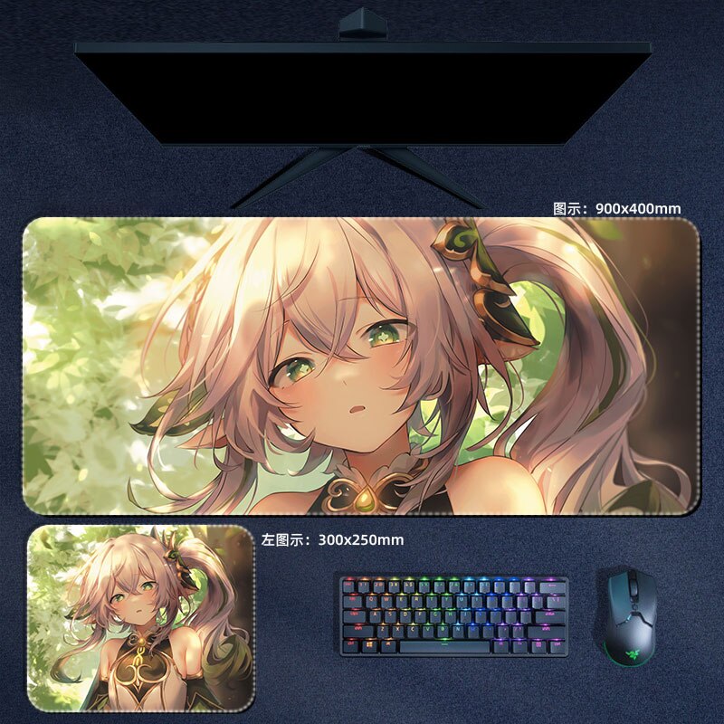 Get ready to immerse yourself in the world of Genshin Impact with this Nahida Mouse Pad! Featuring Lesser Lord Kusanali, this large mousepad provides a comfortable and spacious surface for your computer mouse and keyboard. Made with high-quality materials, it ensures smooth and precise movement, allowing you to enjoy your games and work with ease. The vibrant and detailed design captures the essence of the anime, making it a must-have for any Genshin Impact fan. Upgrade your gaming and working setup with this Nahida Mouse Pad and add a touch of style to your desk!