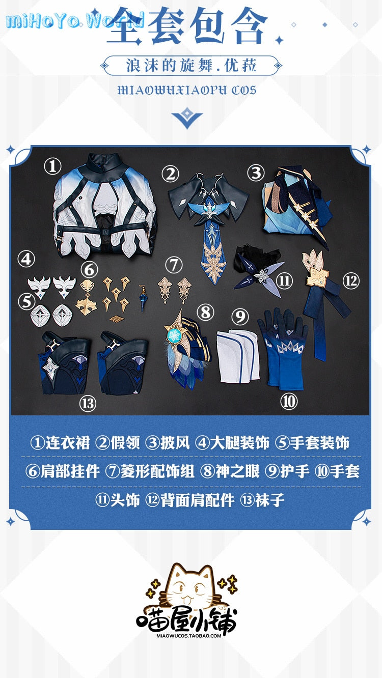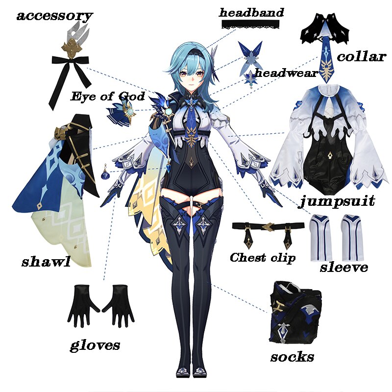 The Eula Cosplay Costume Game Genshin Impact features an authentic and stylish outfit that perfectly captures the spirit of the character. This full set costume includes all the accessories needed to complete the look, making it easy to bring your favorite Genshin Impact character to life.